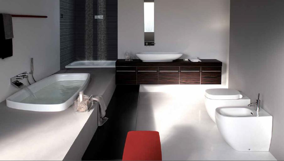 Напольный приставной унитаз с выпуском Vario (т.е. устанавливается вплотную к стене) Laufen (Швейцария) из коллекции Palomba;