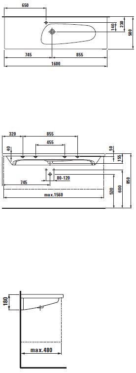 Размеры, (мм): длина - 1600, ширина - 500, высота - 180;
