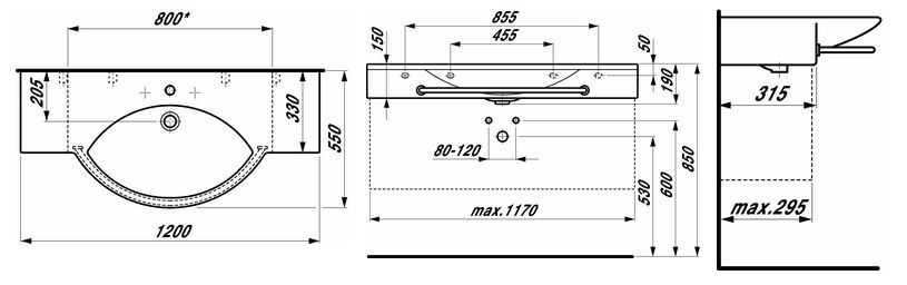 Размеры, (мм): длина - 1200, ширина - 550, высота - 190;