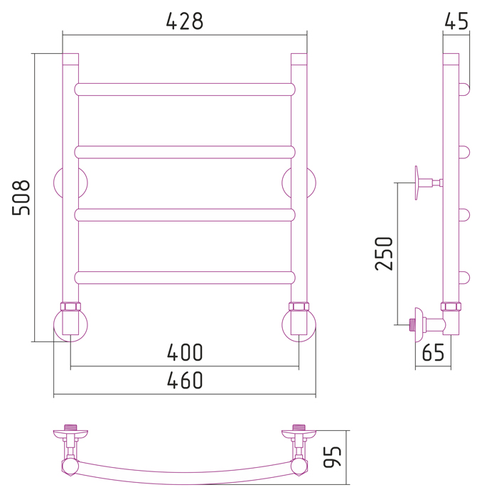 Тип: полотенцесушитель лесенка с горизонтальными перемычками