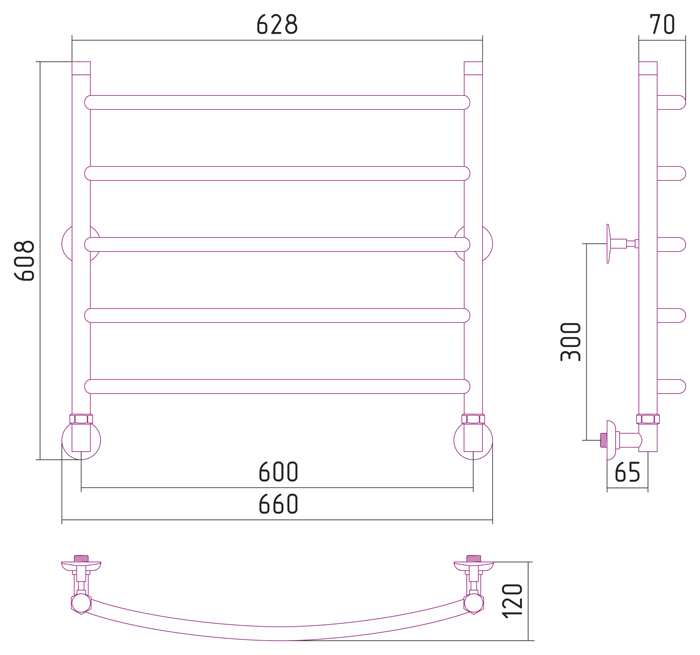 Тип: полотенцесушитель лесенка с горизонтальными перемычками