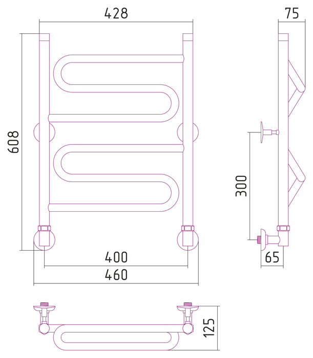 Водяной полотенцесушитель Вариация 600х400 Стилье (Сунержа)