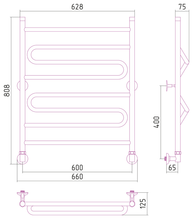 Тип: полотенцесушитель лесенка с горизонтальными перемычками