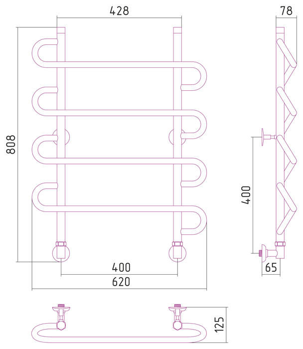 Тип: полотенцесушитель лесенка с горизонтальными перемычками