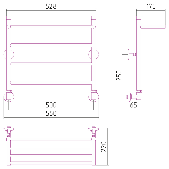 Тип: полотенцесушитель лесенка с горизонтальными перемычками