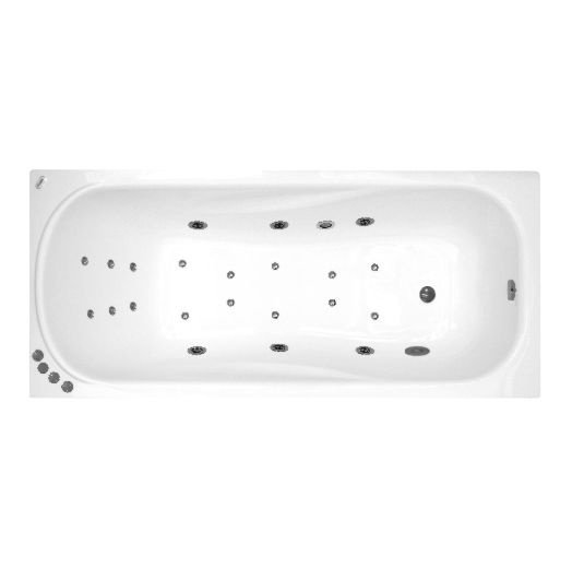 Комплектация: ванна, фронтальная панель, каркасная рама, слив-перелив, 4 встроенные гидромассажные форсунки, 4 встроенные mini форсунки (гидромассаж спины);