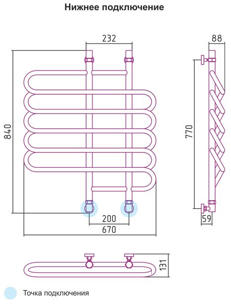 Подключение - диагональное/нижнее;