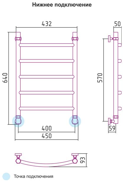 Классический водяной полотенцесушитель с выпуклыми перемычками типа "лесенка" серии Галант