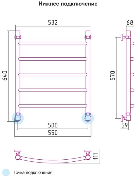Классический водяной полотенцесушитель с выпуклыми перемычками типа "лесенка" серии Галант