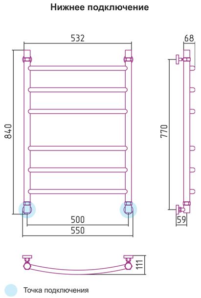 Классический водяной полотенцесушитель с выпуклыми перемычками типа "лесенка" серии Галант