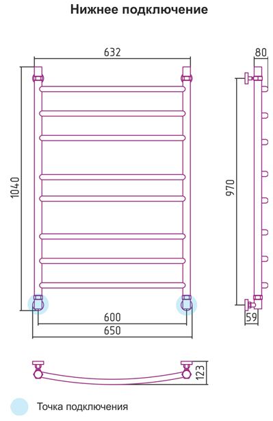 Классический водяной полотенцесушитель с выпуклыми перемычками типа "лесенка" серии Галант