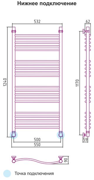 Подключение - диагональное/нижнее;