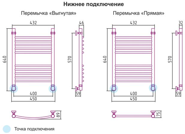 Классический водяной полотенцесушитель с выгнутыми перемычками типа "лесенка" серии Богема