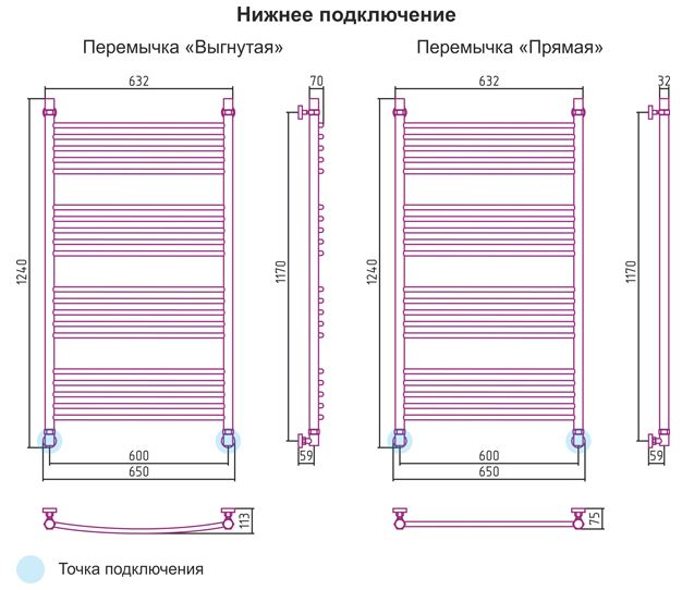 Классический водяной полотенцесушитель с выгнутыми перемычками типа "лесенка" серии Богема