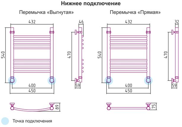 Классический водяной полотенцесушитель с прямыми перемычками типа "лесенка" серии Богема