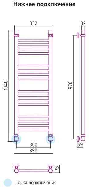 Сунержа Богема 00-0102-1030 | водяной полотенцесушитель 1000x300 (перемычка прямая)
