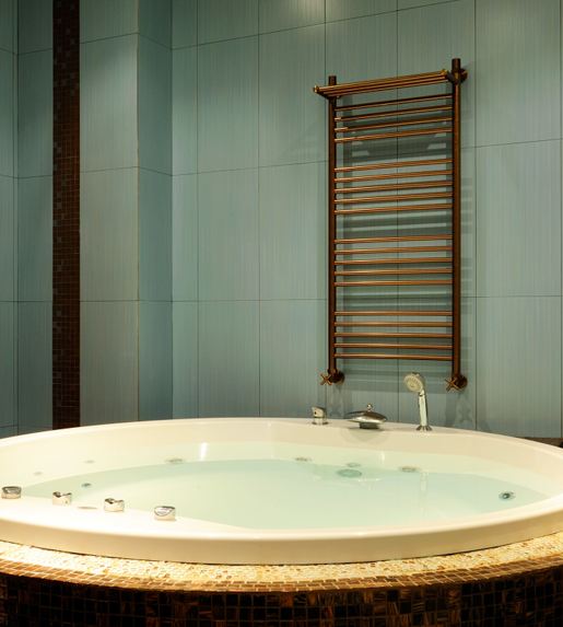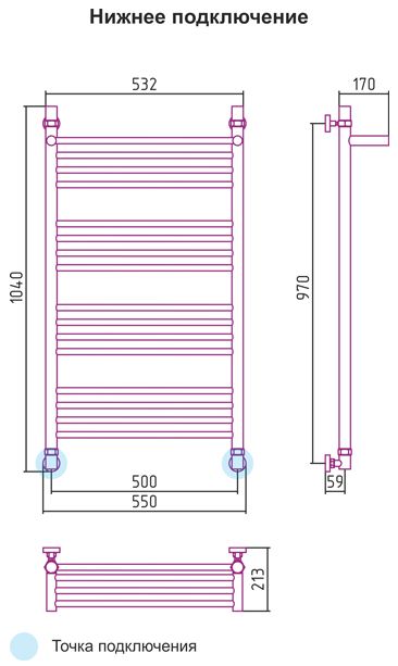 Классический водяной полотенцесушитель с прямыми перемычками и дополнительной полкой типа "лесенка" серии Богема
