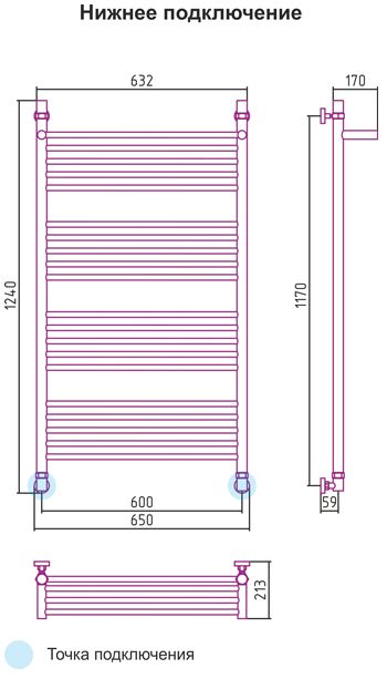 Подключение - диагональное/нижнее;