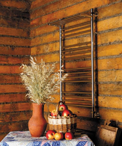 Классический водяной полотенцесушитель с прямыми перемычками и дополнительной полкой типа "лесенка" серии Богема