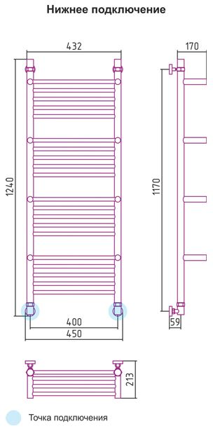 Классический водяной полотенцесушитель с прямыми перемычками и дополнительными полками типа "лесенка" серии Богема