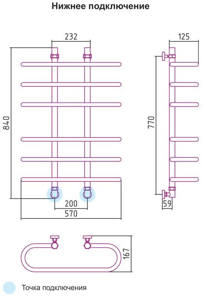 Подключение - диагональное/нижнее;
