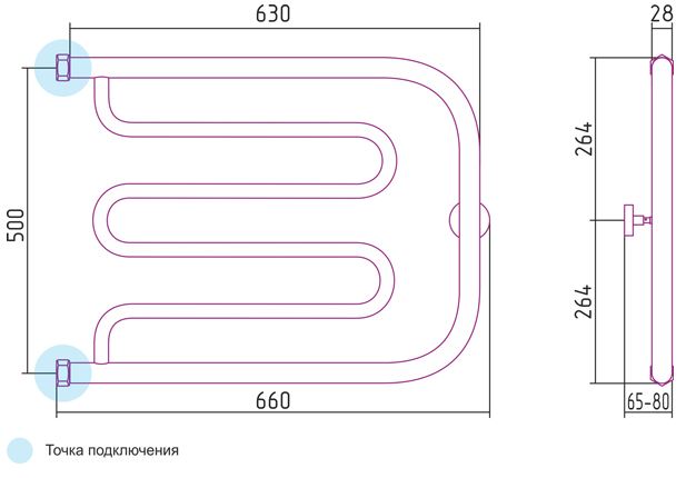 - Температура теплоносителя Т°С - до 105°