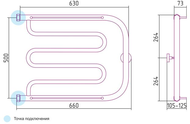 - Температура теплоносителя Т°С - до 105°