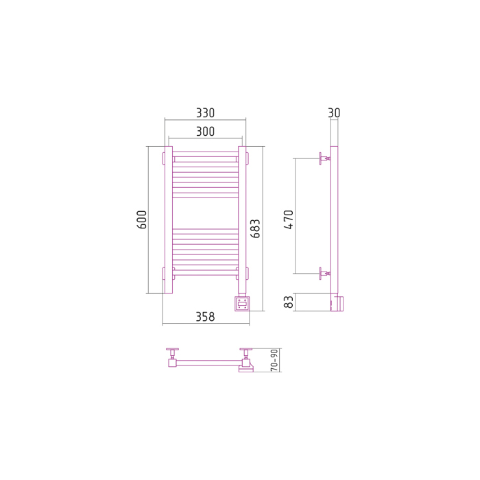 Размеры, (мм): высота - 683, ширина - 358, глубина - 70-90;