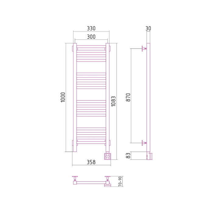 Размеры, (мм): высота - 1083, ширина - 358, глубина - 70-90;