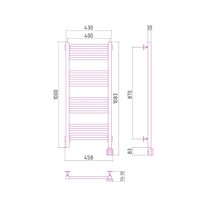 Размеры, (мм): высота - 1083, ширина - 458, глубина - 70-90;