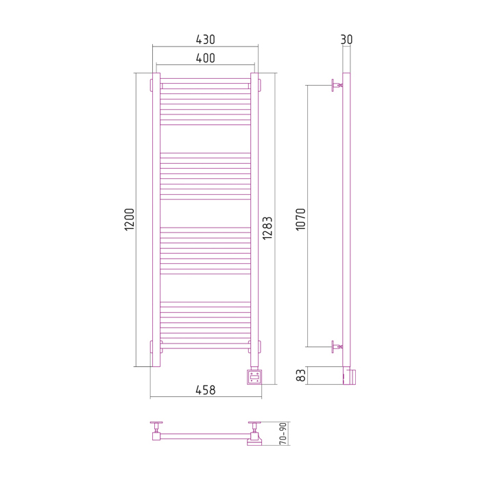 Размеры, (мм): высота - 1283, ширина - 458, глубина - 70-90;
