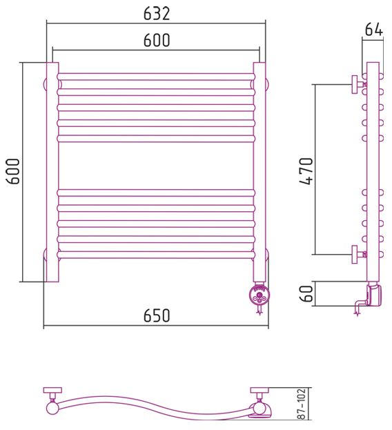 - Температура поверхности полотенцесушителя - 55°С±10%;