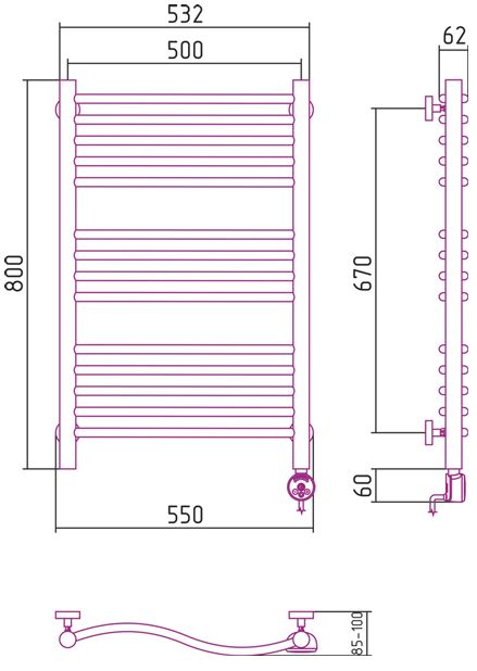 - Температура поверхности полотенцесушителя - 55°С±10%;