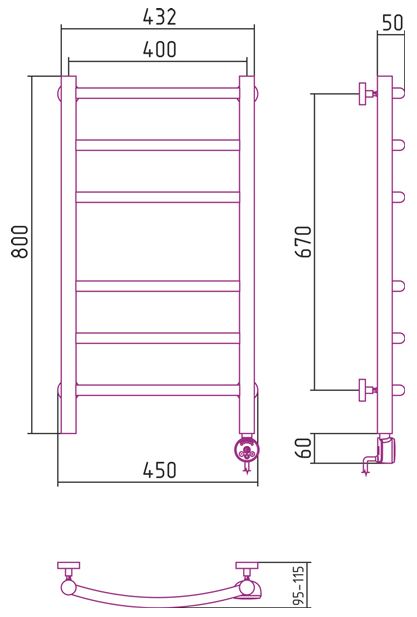 Классический электрический полотенцесушитель с выпуклыми перемычками типа "лесенка" серии Галант