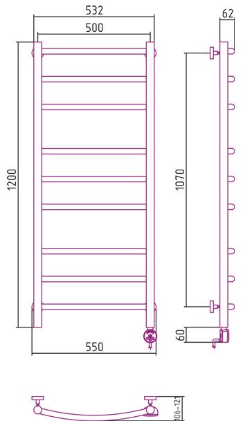 Классический электрический полотенцесушитель с выпуклыми перемычками типа "лесенка" серии Галант