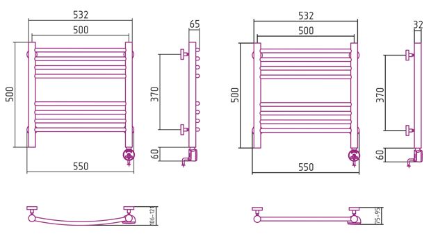 - Температура поверхности полотенцесушителя - 55°С±10%;