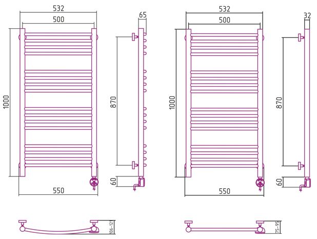 - Температура поверхности полотенцесушителя - 55°С±10%;
