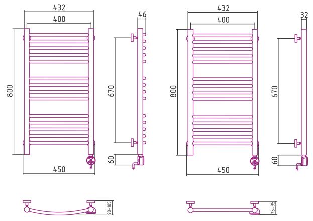 - Температура поверхности полотенцесушителя - 55°С±10%;