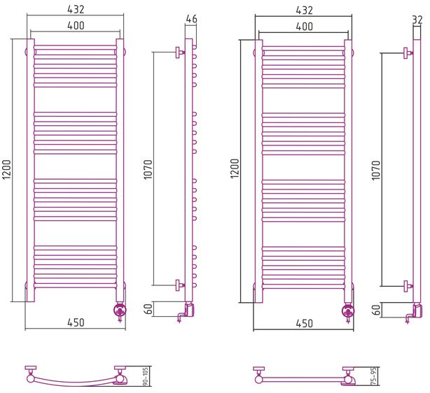 - Температура поверхности полотенцесушителя - 55°С±10%;