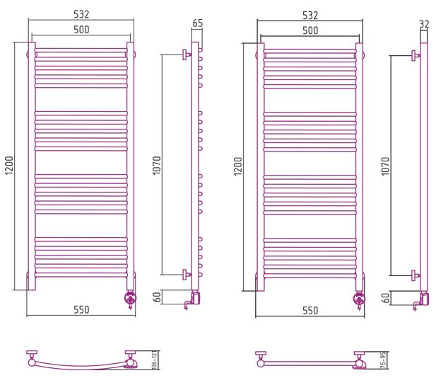- Температура поверхности полотенцесушителя - 55°С±10%;