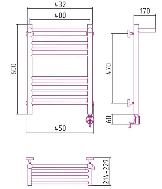 - Температура поверхности полотенцесушителя - 55°С±10%;