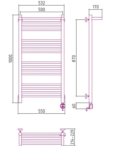 - Температура поверхности полотенцесушителя - 55°С±10%;