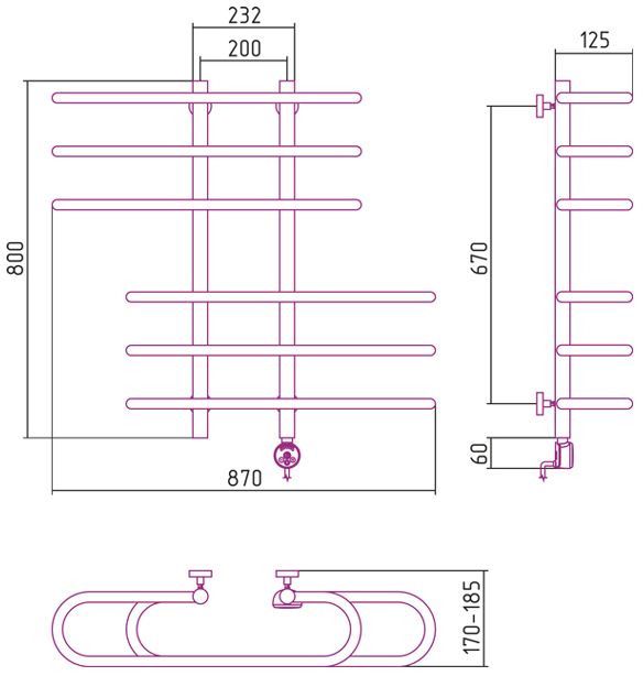 • Температура поверхности полотенцесушителя - 55°С±10%;