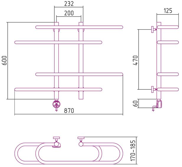 - Температура поверхности полотенцесушителя - 55°С±10%;