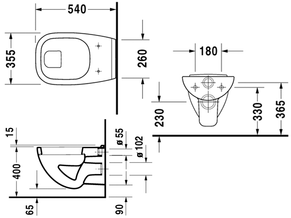 Подвесной унитаз стандарный с горизонтальным смывом (Duravit серия D-Code);