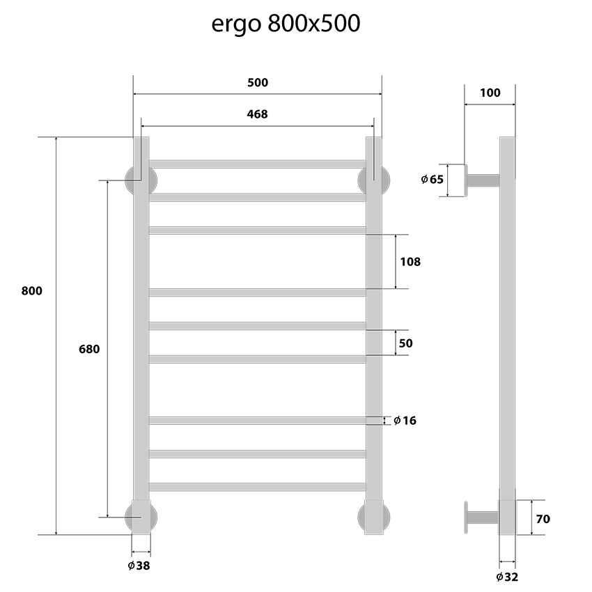 Электрический полотенцесушитель из полированной нержавеющей стали Energy серии Ergo;