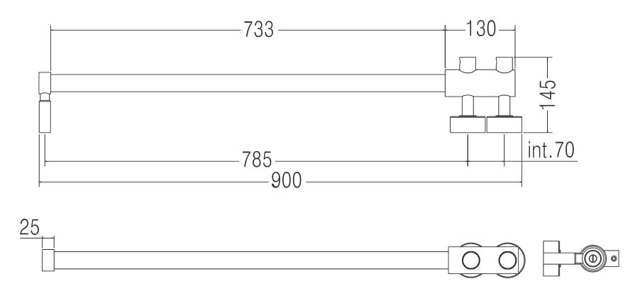 Расстояние между центрами отверстий крепления к стене: 70 мм;