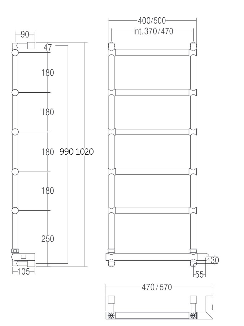Габаритные размеры: ширина - 570 мм, высота - 1020 мм;