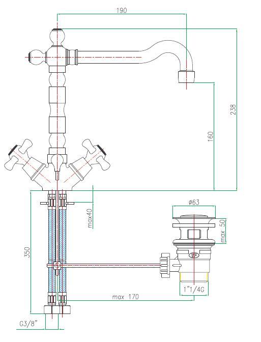 Размеры, (мм): высота - 244, длина излива - 190;