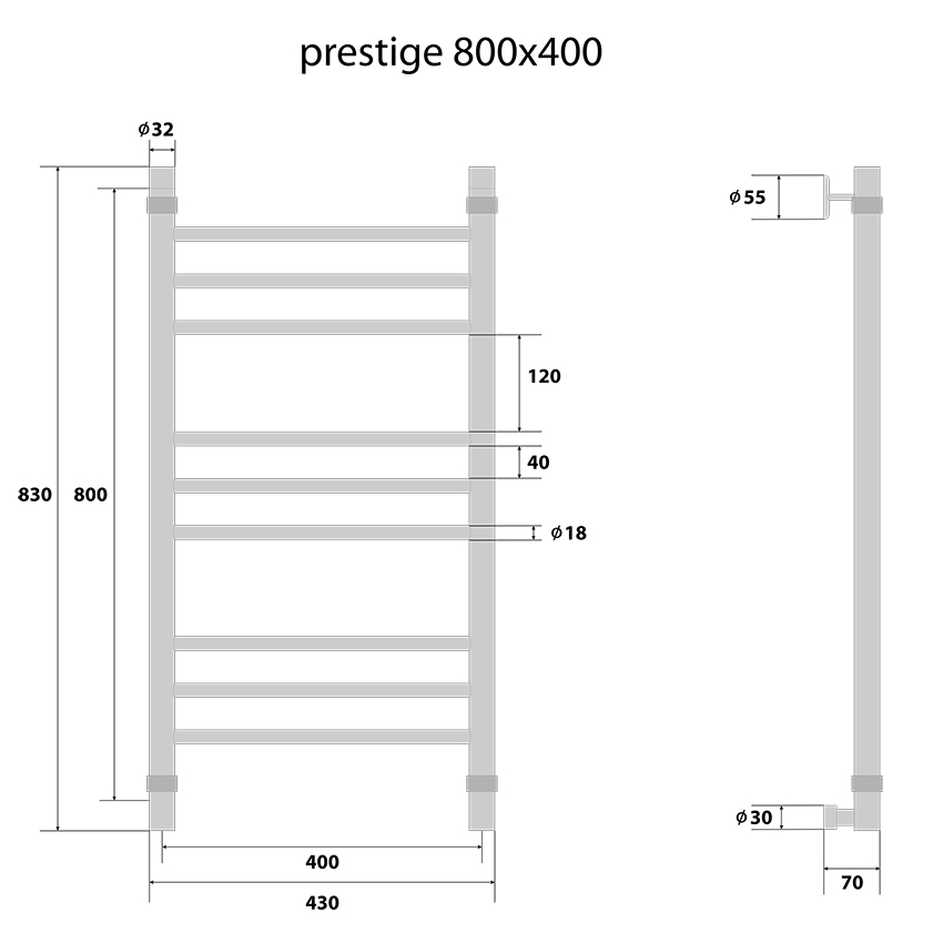 Водяной полотенцесушитель Energy Prestige 800х400. Предназначен для сушки тканевых изделий и обогрева ванных и душевых. Полотенцесушитель монтируется к существующей системе отопления или горячего водоснабжения.
